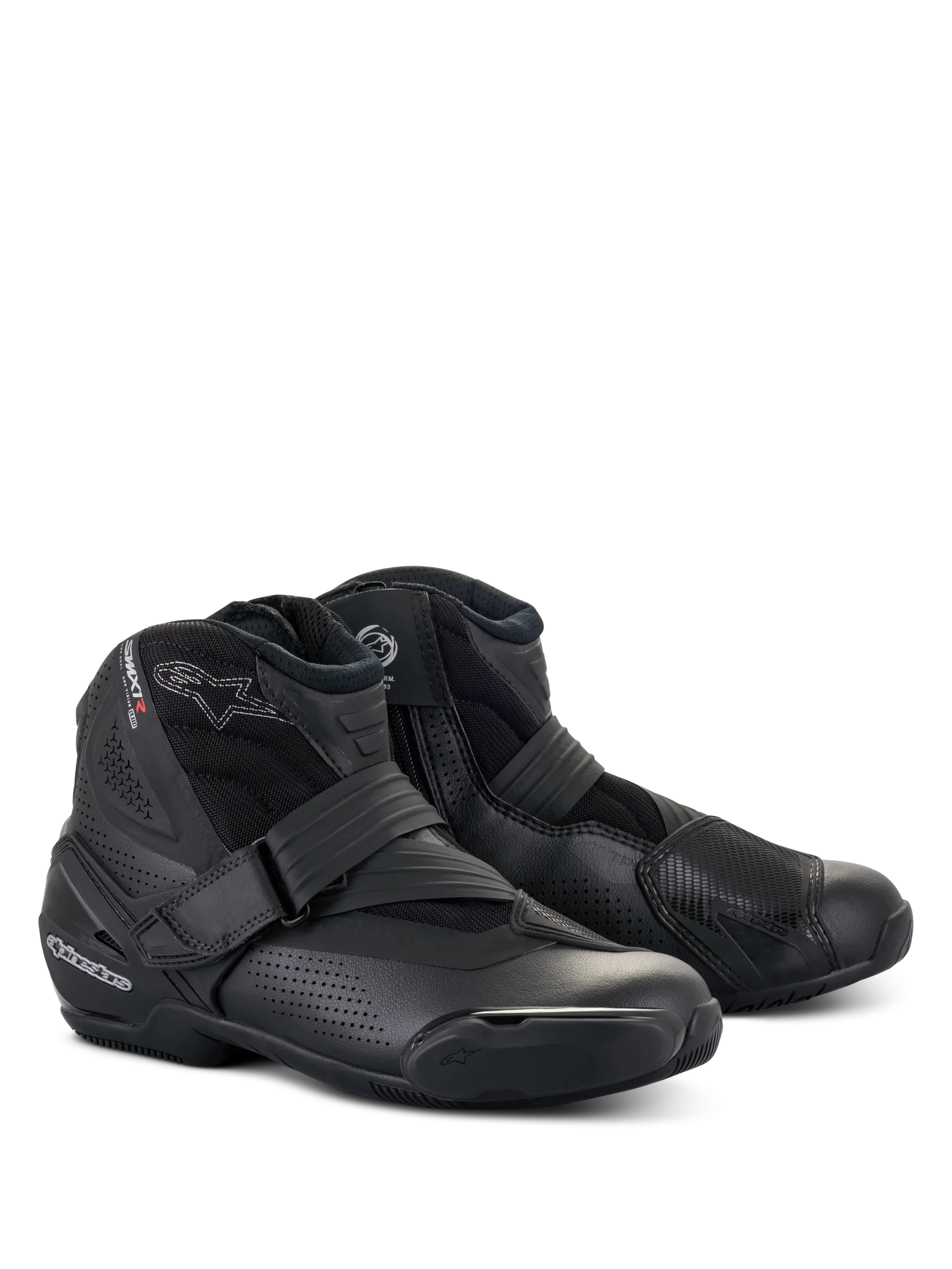 Des bottines élégantes, coupe basse, pour une conduite performante, les chaussures SMX-1 R v2 sont ventilées et intègrent une foule d’innovations techniques pour des niveaux de confort, une coupe et une durabilité bien meilleures. Construites dans une empeigne en microfibre légère et résistante a l’abrasion avec un grand nombre de perforations pour une ventilation et une respirabilité maximales, ces chaussures sont également équipées de protections en TPU positionnées stratégiquement pour une meilleure résistance a l’abrasion dans les zones les plus impactées. Les chaussures de conduite ventilées SMX-1 R v2 avec leurs semelles en caoutchoucs mixtes aux motifs très agrippants offrent une excellente préhension sur la moto et le terrain tandis que les zones a soufflet plus souples permettent le maintien et le contr™le quelle que soit la position de conduite. • Empeigne construite dans une microfibre technique pour le confort, la durabilité et une excellente résistance a l’abrasion. • De nombreuses perforations pour une ventilation maximisée et des soufflets a l’avant en matière textile pour une meilleure respirabilité. • Un système innovant de contrefort au talon avec une sangle de fermeture pour un meilleur ajustement et support, et une structure intègre. • L’arrière du contrefort du talon est construit dans un insert en TPE souple sans couture qui avec la zone flexible arrière procurent une plus grande liberté au mouvement a la cheville et davantage de confort pour les commandes au pied de la moto. • Les soufflets arrière souples laissent une marge de manÏuvre et rentrer l’air pour une bonne ventilation et circulation de l’air. • Nouveaux protège-sélecteurs amovibles en TPU pour davantage de durabilité sur les zones d’impact. • Forme ergonomique et rationnelle sur l’avant-pied qui s’adapte a la plupart des profils de pieds pour un plus grand confort. • Sangle de fermeture anatomique évolutive qui suit la forme naturelle du cou-de-pied du pilote. • Système de fermeture Velcro¨ a l’avant pour un ajustement rapide et sécurisé sur la zone du cou-de-pied et une excellente flexibilité. • Les sangles en TPR disposant d’un tirant elles sont plus faciles a utiliser. • Les fils de fibres aramide garantissent longévité, finesse et légèreté au nouveau système de fermeture. • La semelle en caoutchouc exclusif d’Alpinestars avec ses motifs ultra adhérents procure plus de confort et d’adhérence, le drainage de l’eau et la durabilité. • La semelle intègre un cadre de protection transversal (Transversal Protection Frame) contre les éventuelles contraintes transversales. • Les zones flexibles du cou-de-pied et du talon d’Achille sont construites dans une microfibre légère pour des niveaux optimisés de durabilité, de confort et de manÏuvrabilité sur la moto et hors de la moto. • Motifs en chevrons thermosoudés pour contr™ler le fléchissement et la souplesse des chaussures ; sur le cou-de-pied, au centre, et a l’arrière. • Fermeture a glissière avec curseur inversé pour pouvoir enfiler et retirer facilement les chaussures. • Protection des chevilles a double densité des deux c™tés sous la tige, offrant une protection performante et une résistance a l’abrasion dans les zones exposées. • Sliders a l’avant-pied intégrés moulés par bi-injection remplaables, avec un nouveau concept de fixation facile a visser pour un remplacement plus simple et rapide. • Contrefort du talon externe, très élastique en TPU, coussinet sur la cheville latérale et protège-sélecteur pour une meilleure protection contre les chocs, et la durabilité. • Embout intérieur au niveau des orteils situé sous la tige pour une plus grande durabilité, une meilleure sensation tactile et performance. • La semelle plantaire anatomique peut être retirée, en mousse EVA et en Lycra¨ elle assure le confort et le maintien. • Doublure intérieure en tissu mesh pour un confort rafra”chissant et l’évacuation de l’humidité. • Le marquage CE, conformément a la législation européenne, répond aux obligations de commercialisation de ce produit. • Le produit est conforme a la norme suivante : • Homologation CE EN13634:2017.