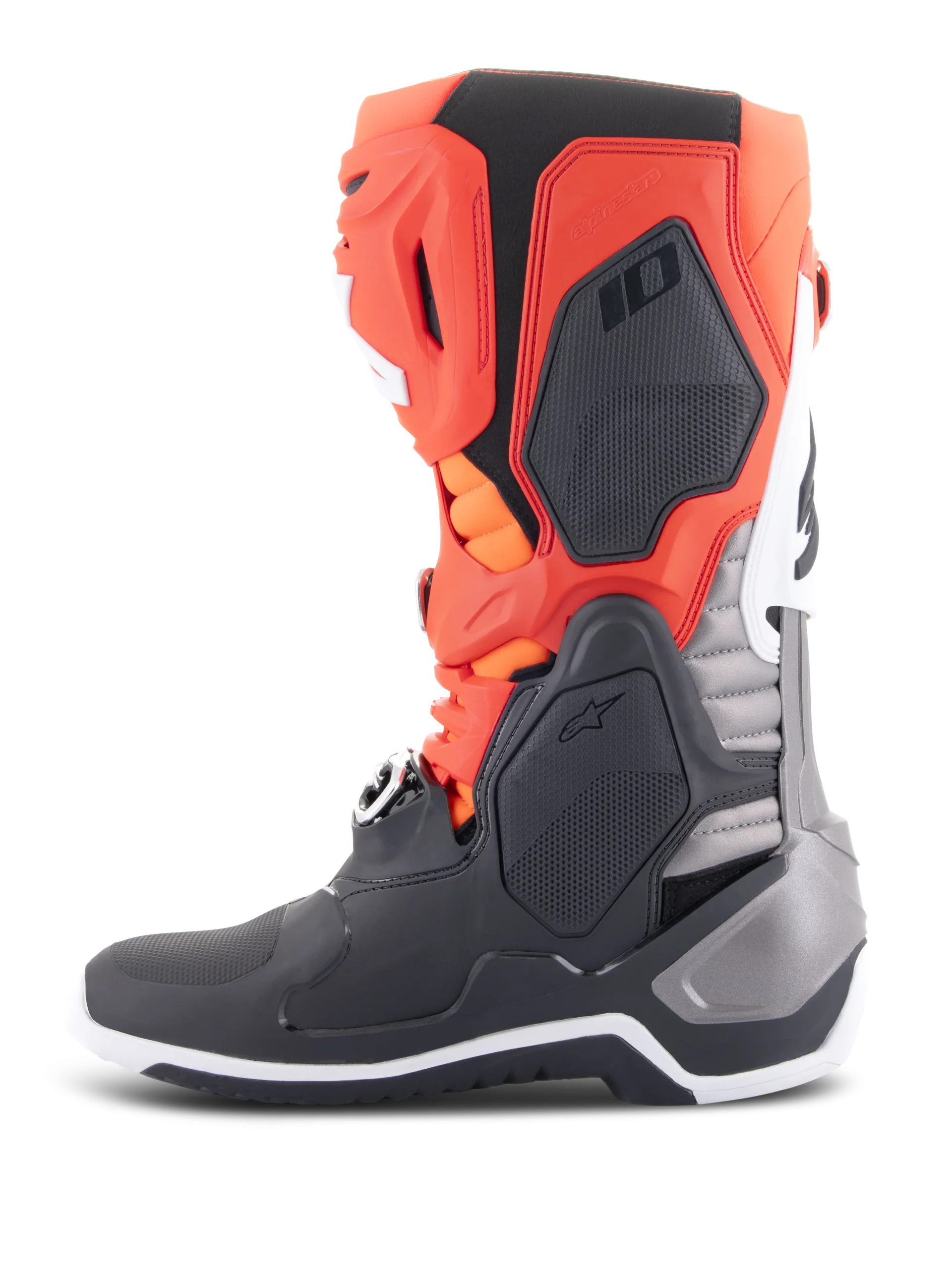 Le développement continu de la Tech 10 a été guidé par trois priorités principales : améliorer la fonctionnalité, les performances et la sécurité globales de la botte, tout en réduisant le poids et le volume de matériau sur la botte. Les versions les plus récentes des Tech 10 offrent une plus grande liberté de mouvement et une plus grande flexibilité, tout en offrant un meilleur contrôle des forces de flexion et de torsion qui améliorent considérablement les performances de la botte, donnant ainsi au motocycliste une plus grande confiance et une meilleure protection.
