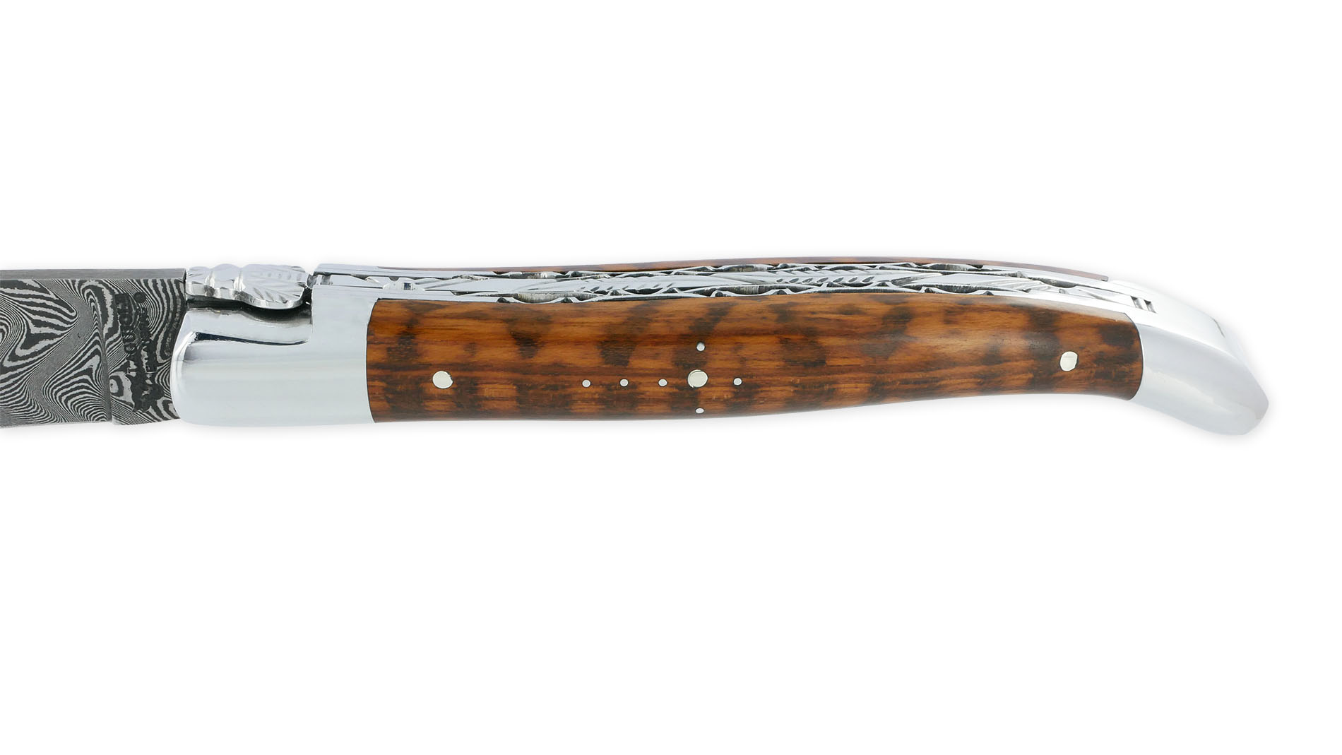 Les lames, ressorts, mitres massives en inox et les clous sont fabriqués à la forge Laguiole en Aubrac.