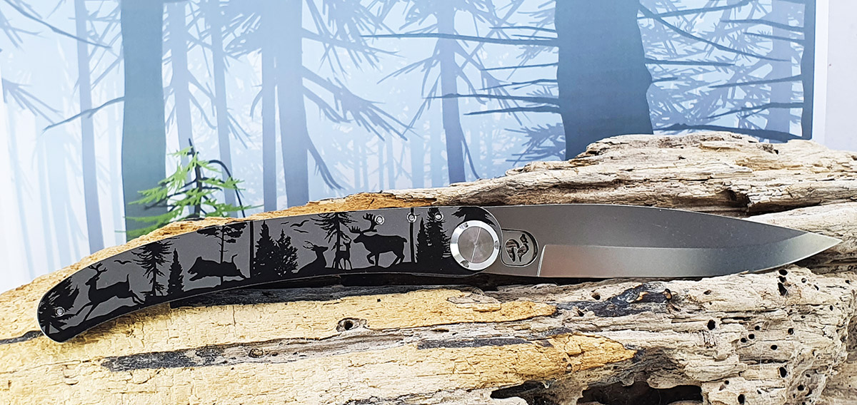 Chaque couteau Le Coq Français est livré avec étui noir a glisser dans la poche et personnalisable par une gravure OFFERTE sur la lame