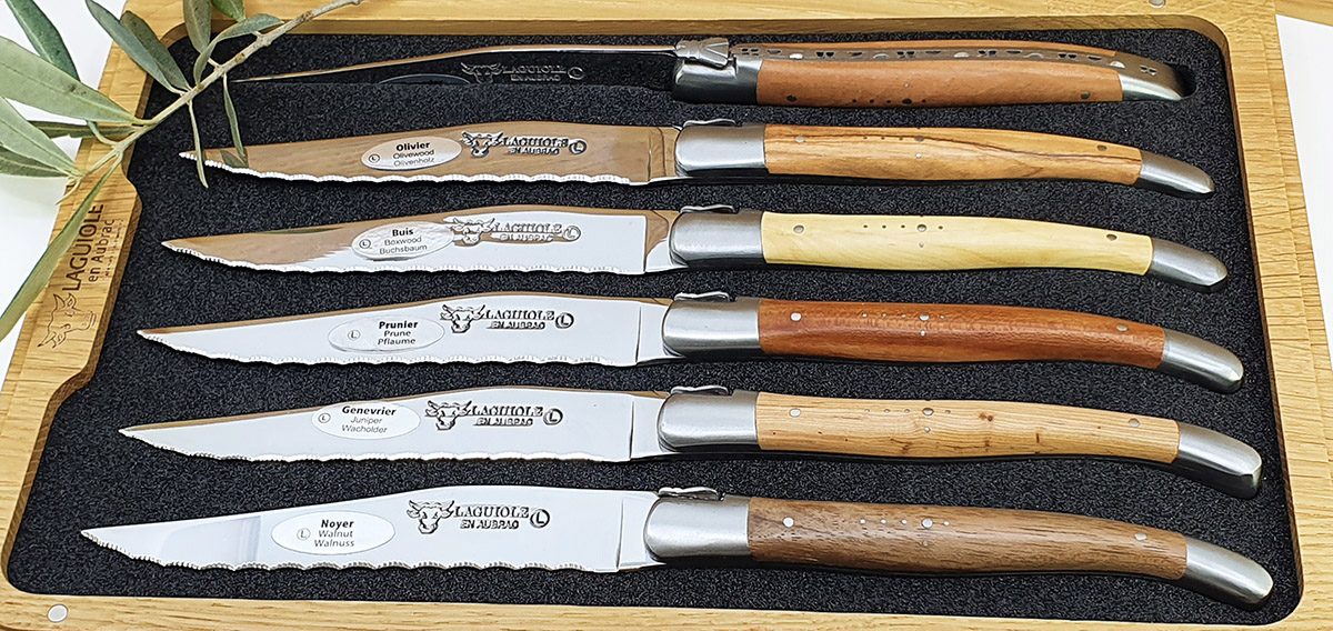 Couteaux de table Laguiole en Aubrac Dentés Steak Bois de France (Set de 6)