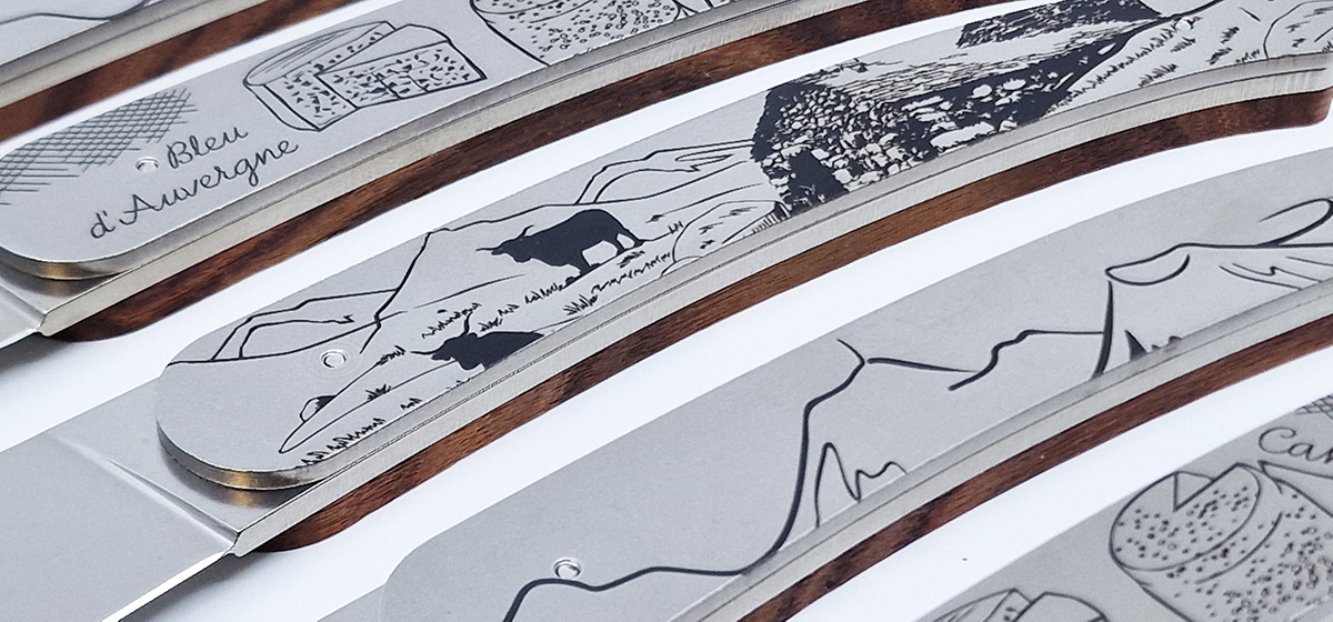 Gravures laser noir sur le manche inox sur le recto