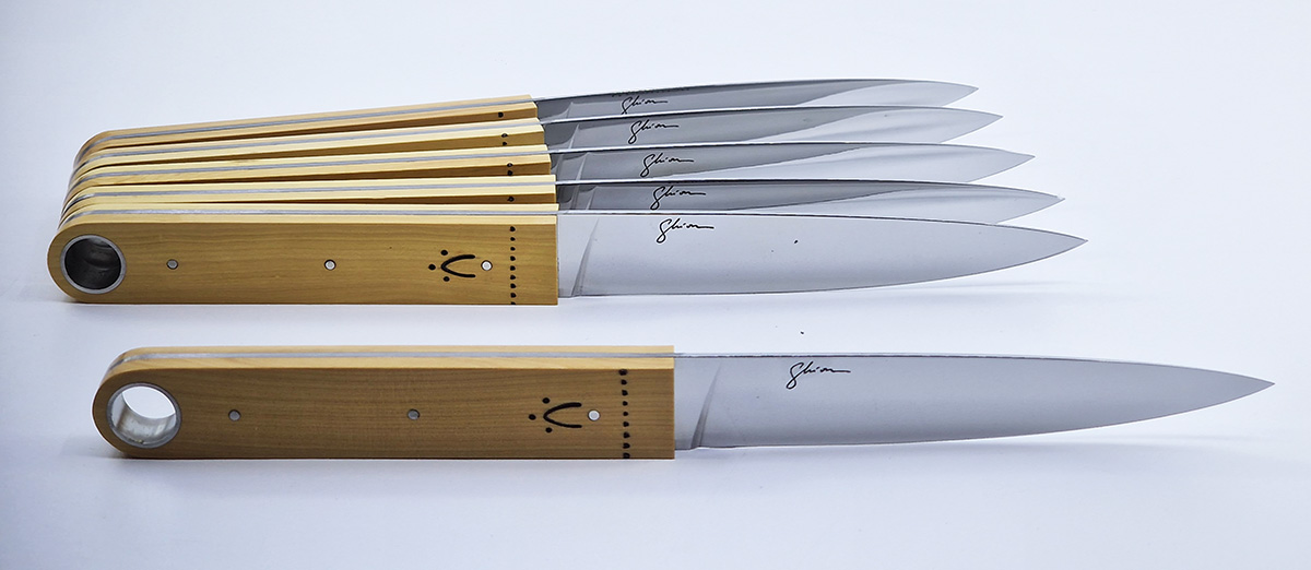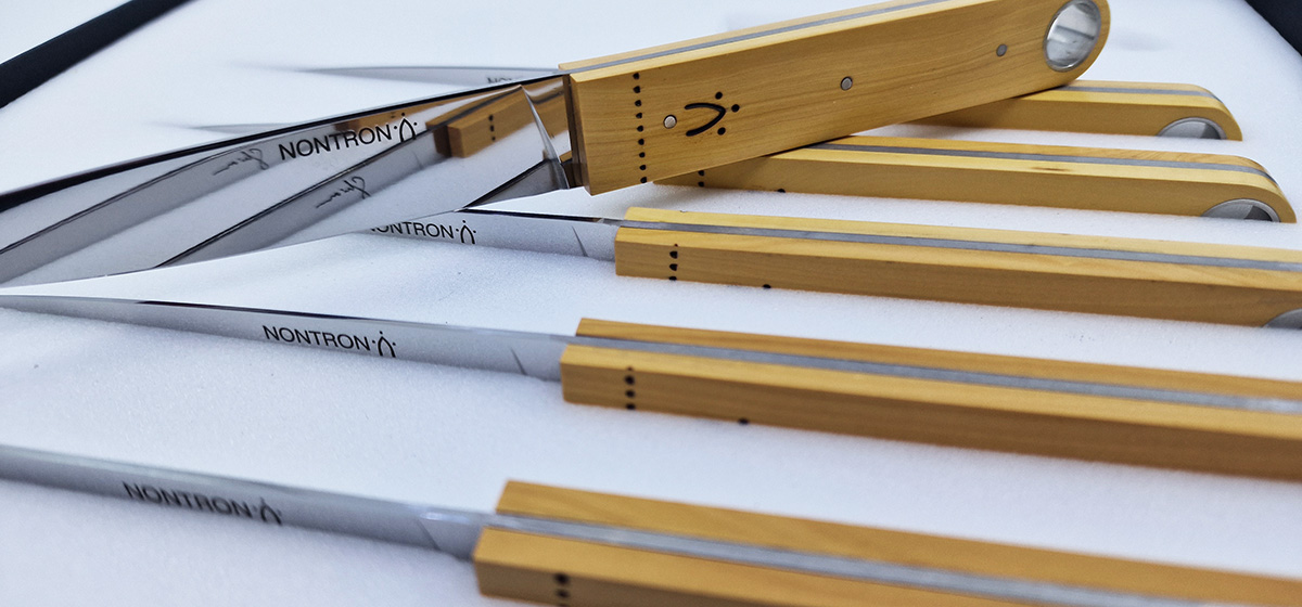 Imaginé par Christian Ghion, ce couteau de table marque un point d’achèvement dans la synthèse entre une approche résolument moderne et la mise en valeur des codes consacrés du couteau nontronnais.