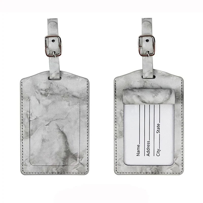 Votre bonne vielle valise vous accompagne partout depuis des années ? Cette super Étiquette à Bagage couleur Marbre est faite pour vous ! Grâce à sa sangle réglable, elle s’attachera facilement à votre valise et permettra de l’identifier rapidement en cas de perte tout en lui donnant plus de style.