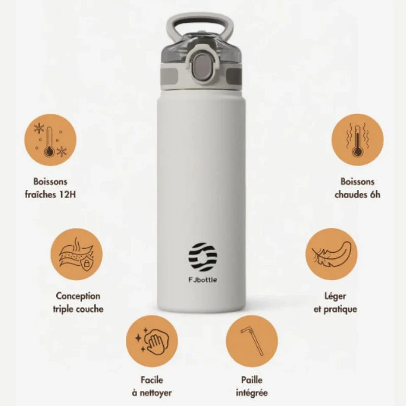 Gourde Isotherme avec Paille Intégrée pour Aventurier