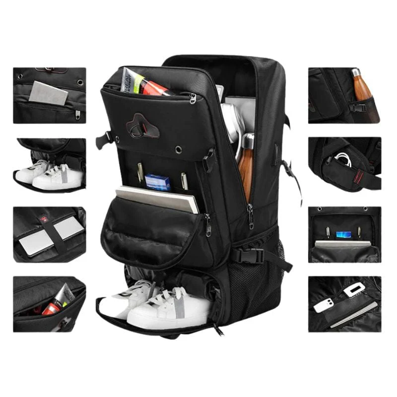 - Caractéristiques et spécificités : Grande capacité, Waterproof, Extension, Antivol, USB Charging, Multipoches, Compartiment pour chaussures, Rangement ordinateur,