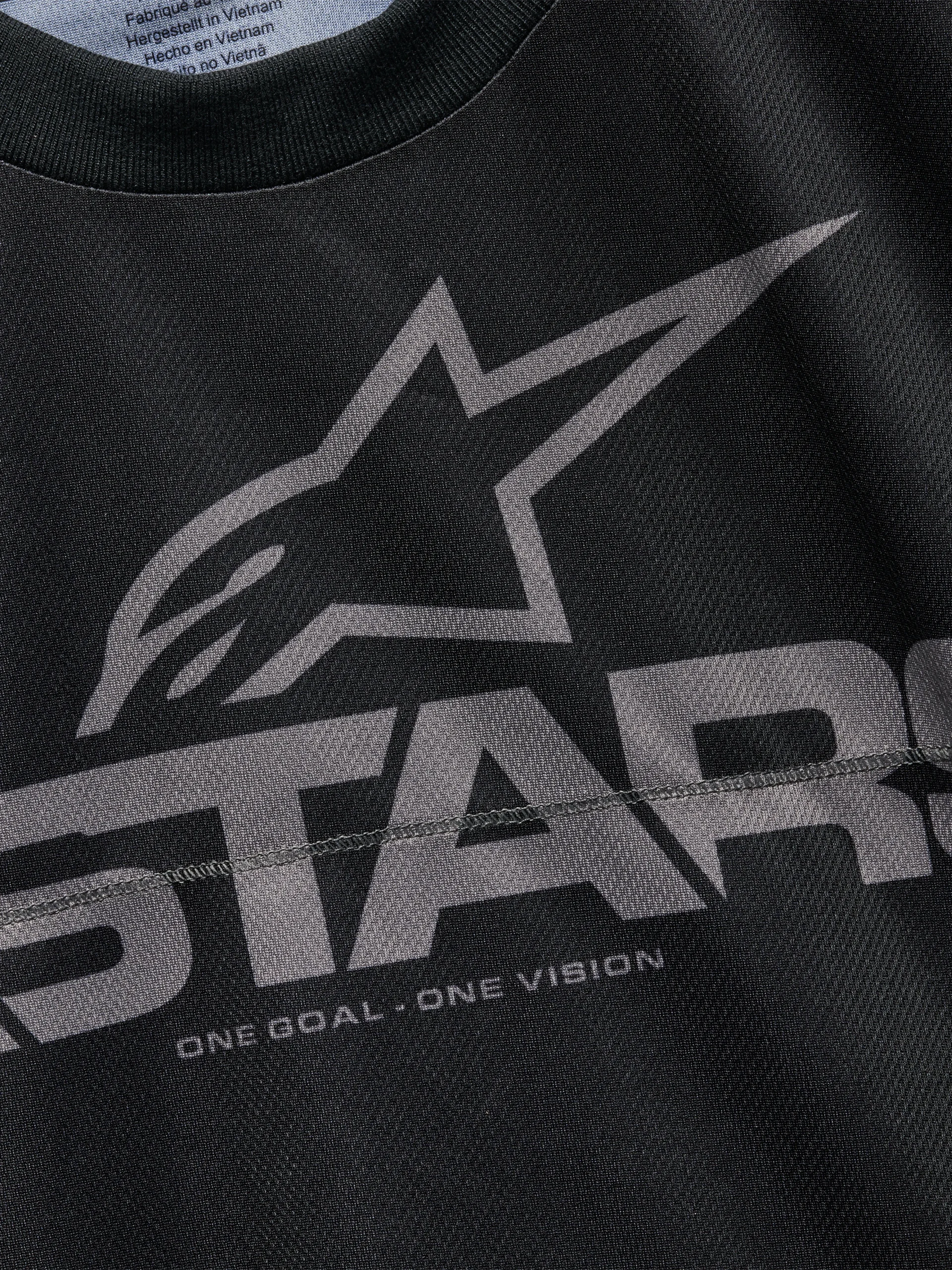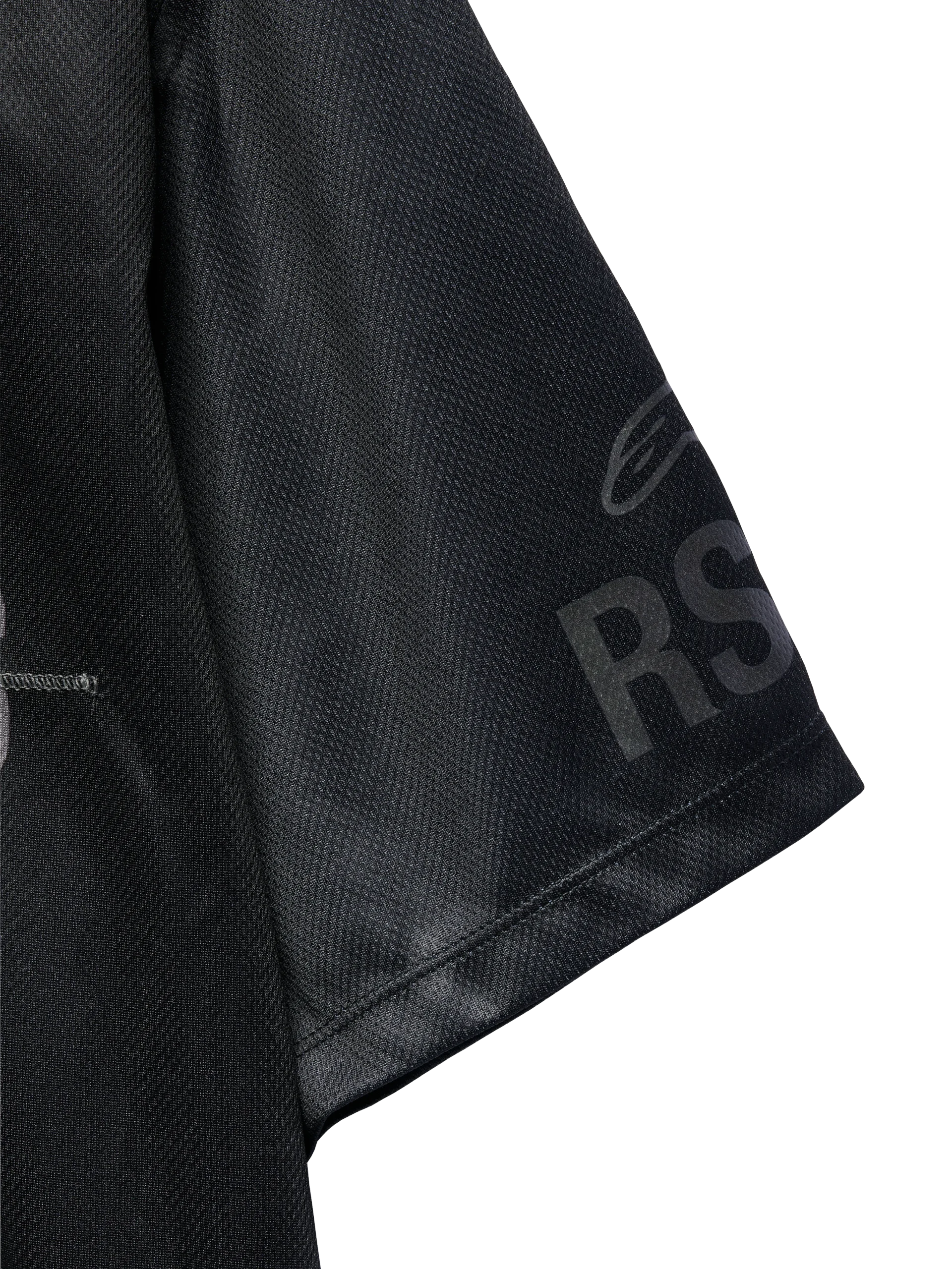 Le maillot fluide a commencé sa vie comme un maillot Alpinestars MX en stock mort, avant de passer sous le couteau et le tailleur RSRV. Le maillot original a été retravaillé avec des côtes, un redimensionnement et un raccourcissement pour maintenir sa fonctionnalité technique, mais l’amener vers une esthétique plus avant-gardiste. La modification la plus notable est le raccourcissement des manches de longues à courtes. Nous avons également éliminé le panneau arrière allongé et reconfiguré la taille pour lui donner une coupe plus carrée et plus ample. Une partie du branding est conservée du branding original, tandis que le traitement RSRV est appliqué par le biais d’un marquage de travail orné sur les épaules et d’une bande de surpiqûre signature RSRV traversant la poitrine.