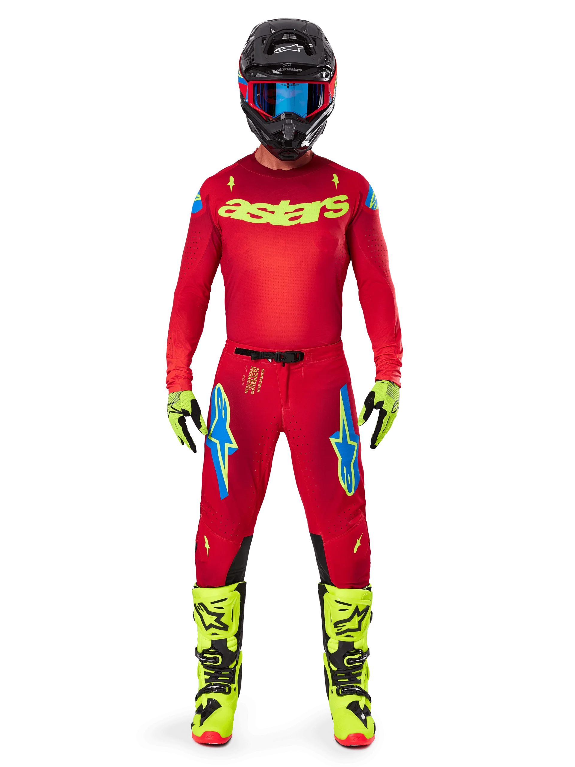 Supertech est la ligne innovante de vêtements de motocross Pro Level d’Alpinestars, conçue pour des performances exceptionnelles pour la conduite tout-terrain. Les vêtements Supertech offrent un design entièrement Factory Rider et sont dotés d’une multitude de technologies éprouvées pendant les courses de Supercross et Championnats de Motocross pour des niveaux optimaux de flexibilité, de liberté de mouvement, d’aération, de durabilité et de confort.