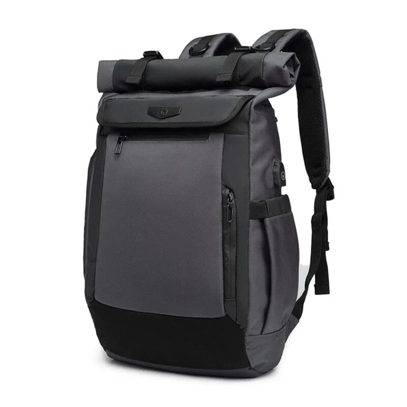 Sac à Dos Roll Top Backpack avec port USB intégré. Très à la mode, ce type de sac de voyage offre beaucoup de place pour tout ce que vous voulez emporter. Nous vous recommandons ce super modèle pratique et tendance pour transporter vos affaires. Il vous offrira un super style au quotidien.