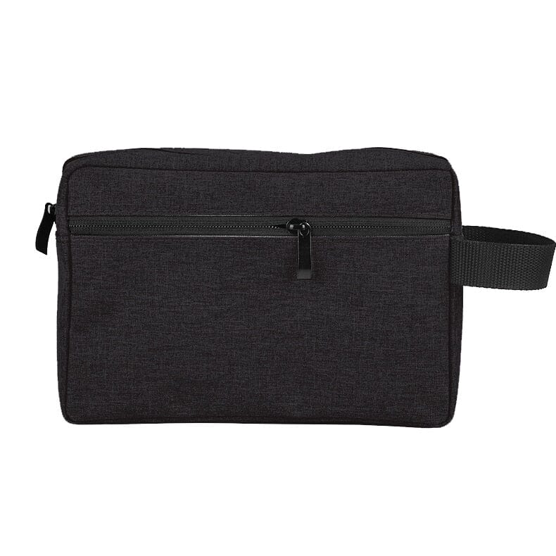 Trousse de Toilette Personnalisée en Tissu Oxford résistant pensée spécialement pour les voyageurs et excellente comme idée cadeau ! Elle dispose d’une grande poche principale et d’une petite poche à l’avant. Fermeture zippée.