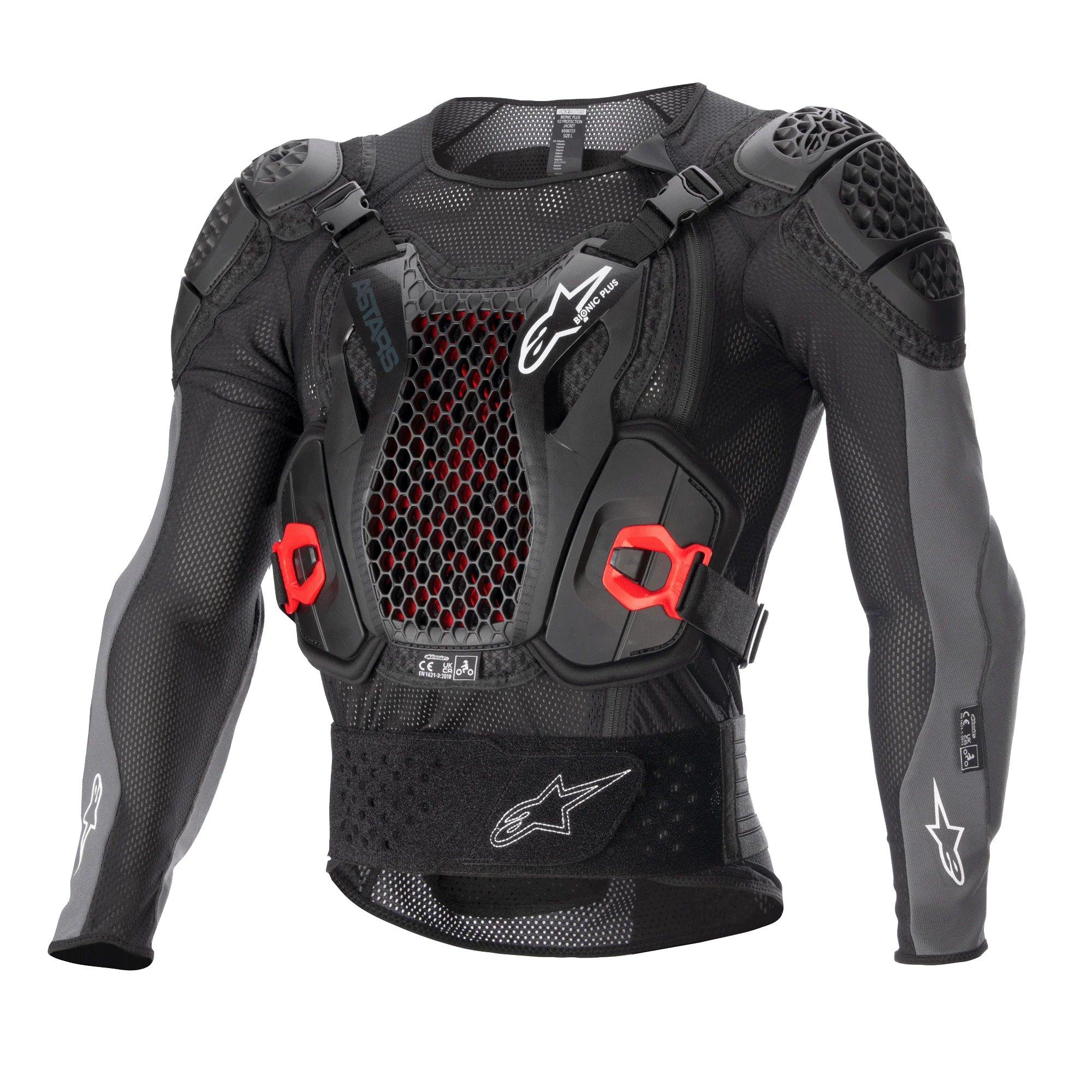 Une veste de protection ultra-légère certifiée CE et UKCA offrant une excellente protection du haut du corps contre les impacts. Ce protecteur est doté d’un tout nouveau protège-poitrine de niveau 2 avec technologie Cell pour un poids ultra-léger et une ventilation optimale. Le protège-dos super ventilé de niveau 2 avec technologie Nucleon Cell & Flex Hybrid est conçu de manière ergonomique pour un ajustement adaptatif amélioré. Les protecteurs avant et arrière sont renforcés d’un rembourrage en mousse pour un ajustement sûr et confortable.