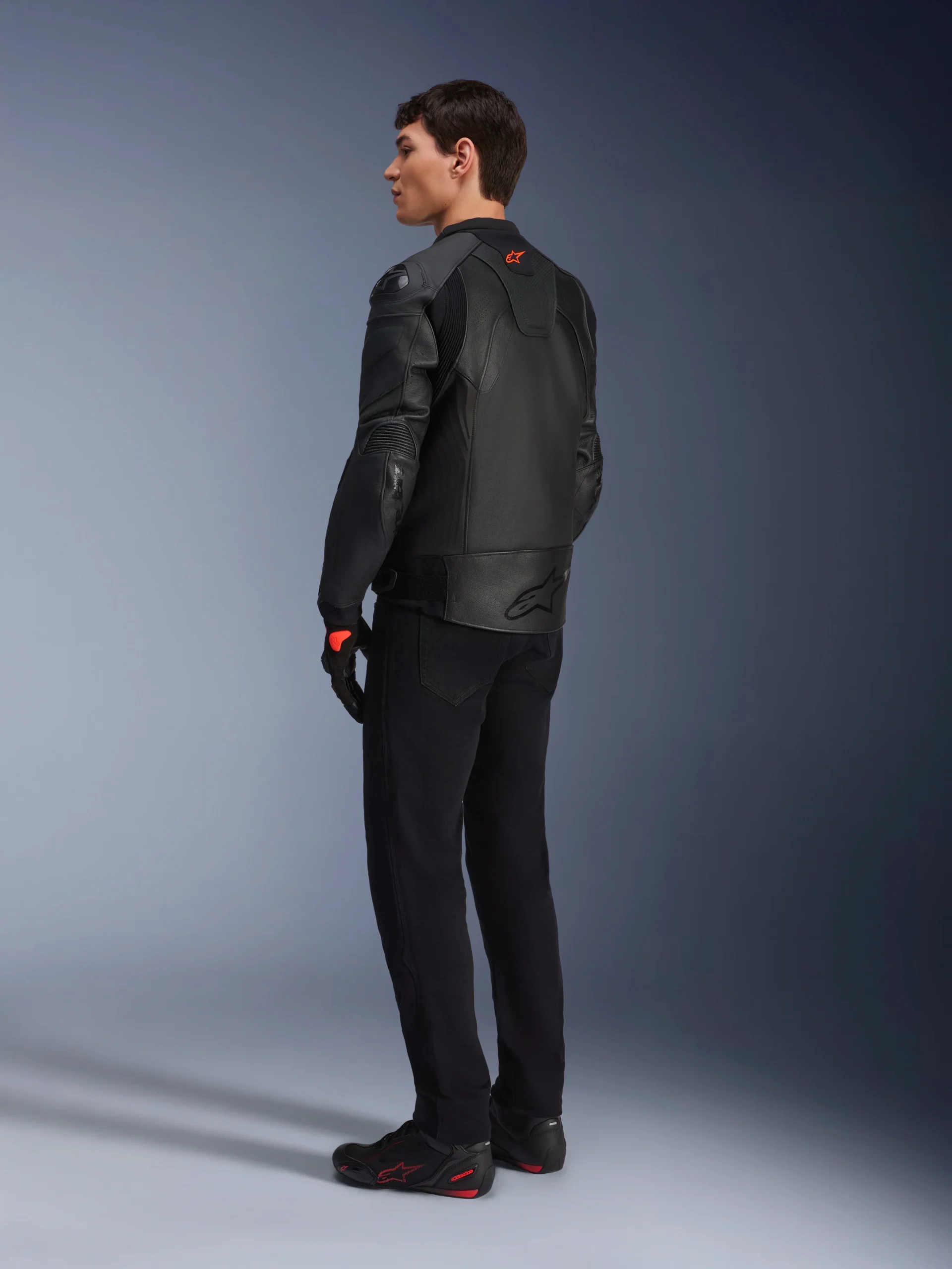 Construction en cuir de qualité ‘Race’ de 1,3mm pour le mélange optimal de résistance à l’abrasion et de confort. Des panneaux stretch techniques étendus sous les bras, sur les bras intérieurs et autour du cou pour un ajustement optimisé.