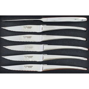 Couteaux de table Laguiole en Aubrac Dentés Steak Forgés à chaud Brillant (Set de 6)
