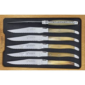 Couteaux de table Laguiole en Aubrac Dentés Steak Manches en Pointe de Corne (Set de 6)