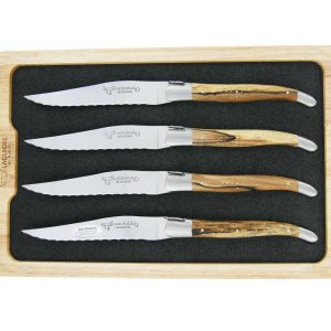 Couteaux de table Laguiole en Aubrac Dentés Steak Manches en Bois d’Aubrac (Set de 4)