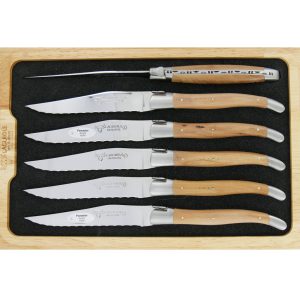 Couteaux de table Laguiole en Aubrac Dentés Steak Manches en Buis (Set de 6)